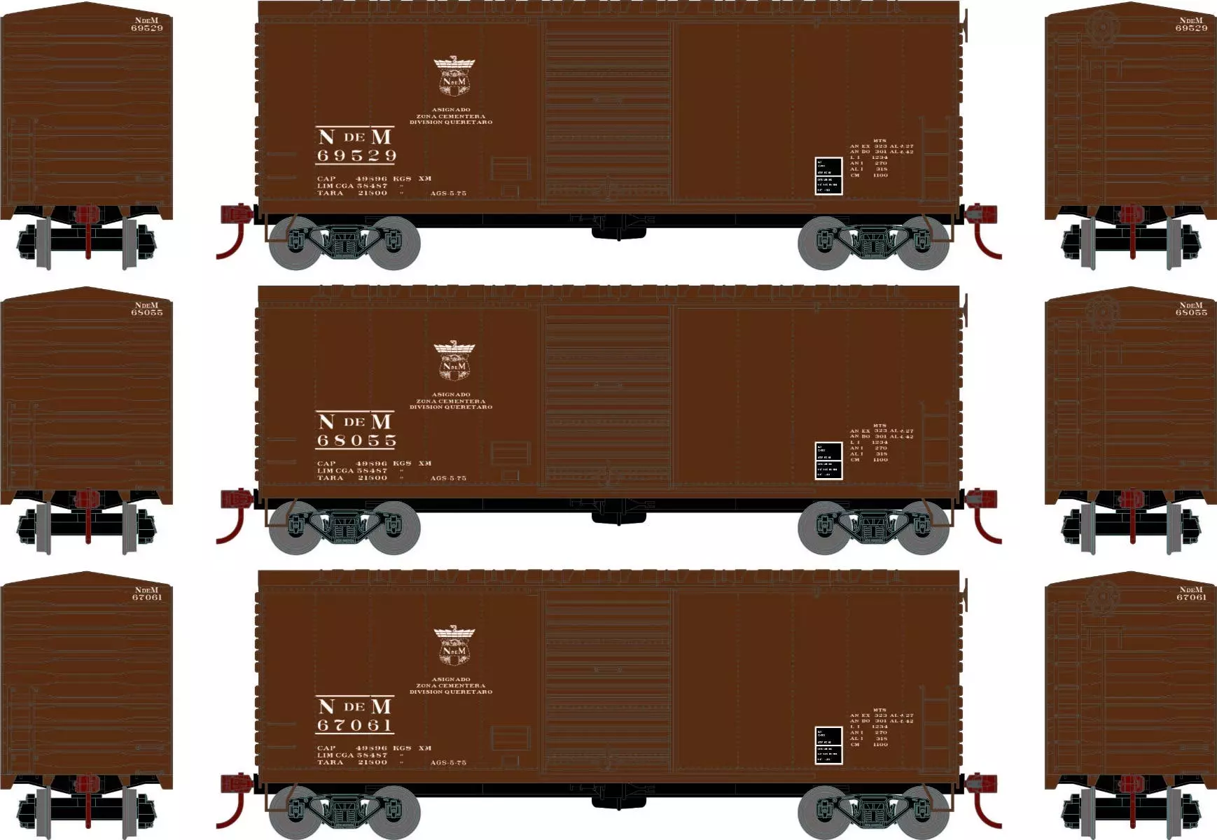 Athearn 67980 HO 40ft Modernized Boxcar Nacionales De Mexico #67061/68055/69529