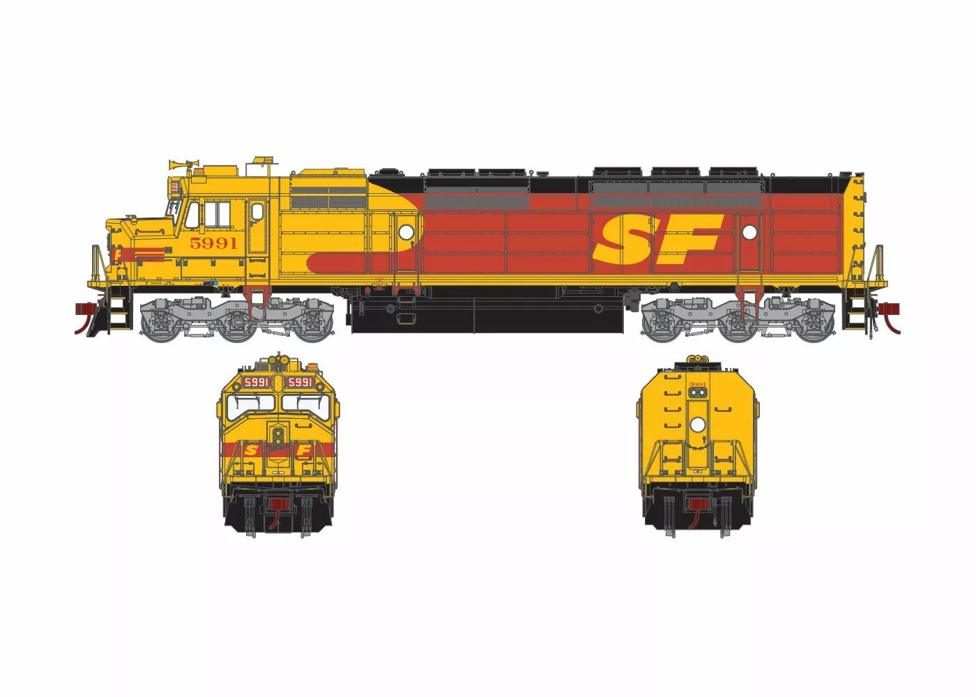 By the early 1960โs the Electro-Motive Division (EMD) was at a big disadvantage. Their 567 engine, in use for over 20 years, had reached itโs peak at 2,500 horsepower in a turbocharged 16-cylinder version. EMD released a new 645 engine in 1966. The most powerful locomotive using this series of engine was the SD45, powered by a 20-cylinder turbocharged 645E engine producing 3600 horsepower. EMD then offered the V20 645E engine in the SDP45 in a standard hood configuration and longer frame to occomodate the steam generator needed for passenger service. The EMD SDP45 was a good passenger locomotive, but to the Santa Fe Railway it did not look the part. EMD therefore designed a lightweight โcowlโ body to cover the locomotive, though it did not, as in earlier cab units, provide any structural strength, which remained in the frame. The cowl provided sleeker looks, better aerodynamics at speed, and allowed the crew to enter the engine compartment en route for diagnostics and maintenance. After sponsoring the development of the FP45 passenger locomotive, the Santa Fe requested a similar freight locomotive from Electro-Motive. Where the FP45 was an SDP45 wrapped in a full-width Cowl carbody, the new F45 was essentially an SD45 given the same treatment.