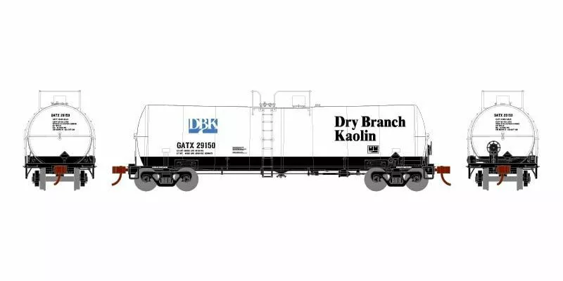 Athearn ATH16351 HO RTR 16K Clay Slurry Tank Car, Dry Branch Kaolin/GATX #29150