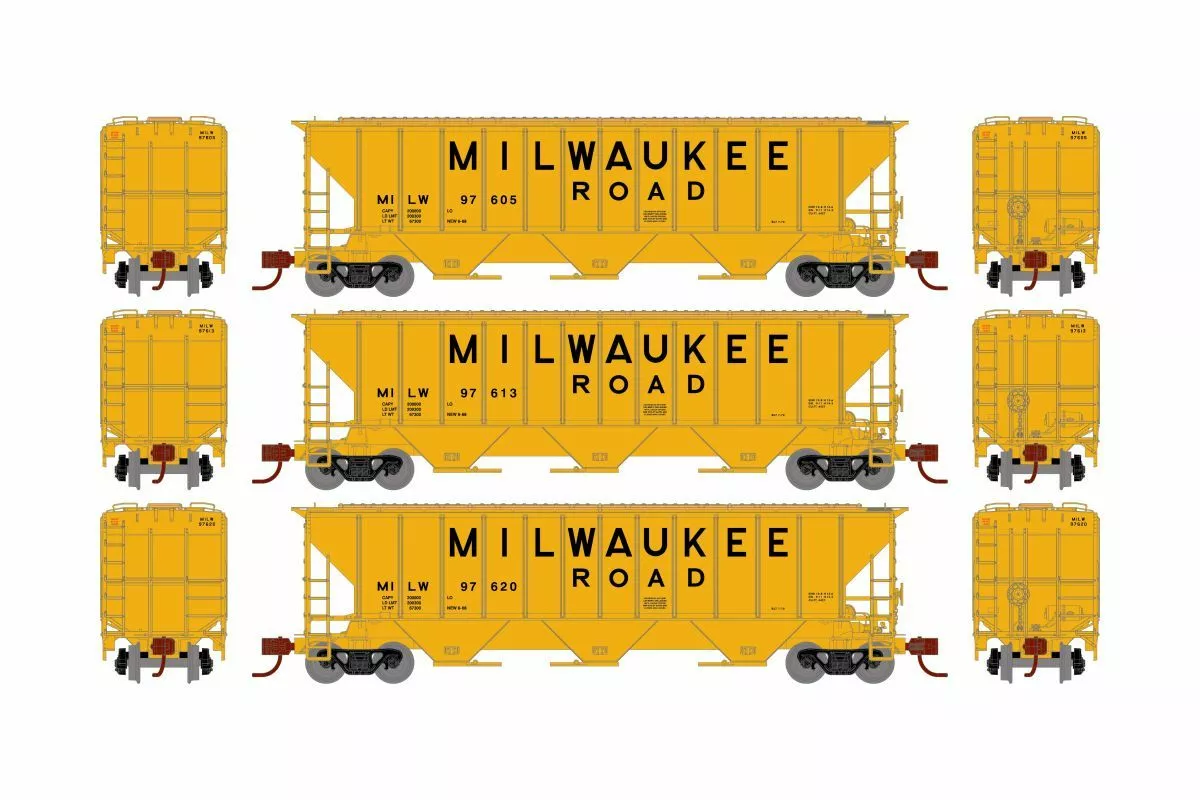 Athearn N PS 4427 Covered Hopper, Milwaukee Road 3-Pack