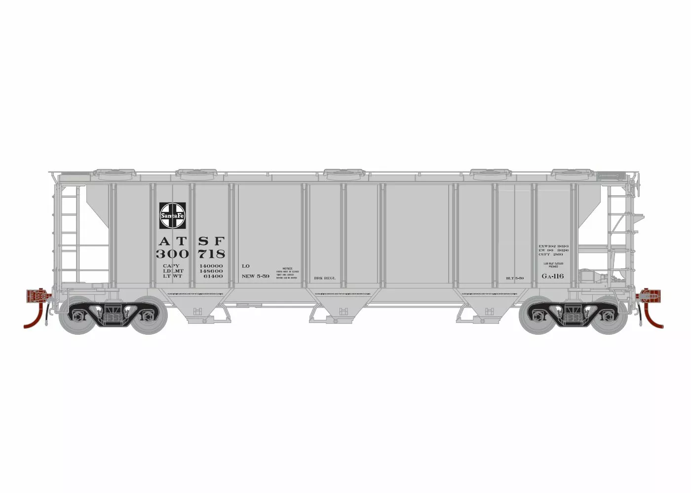 Athearn N PS2 2893 3-Bay Covered Hopper, Santa Fe #300768