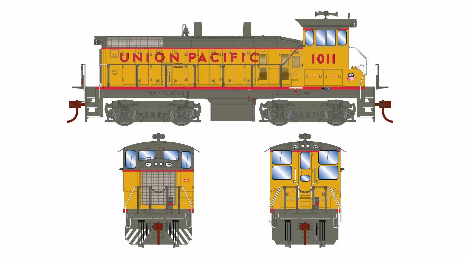 Power was provided by an EMD 645E 12-cylinder engine which generated 1,500 horsepower. This locomotive was built on the same common frame as the EMD SW1000, giving it an overall length of 44 feet 8 inches.