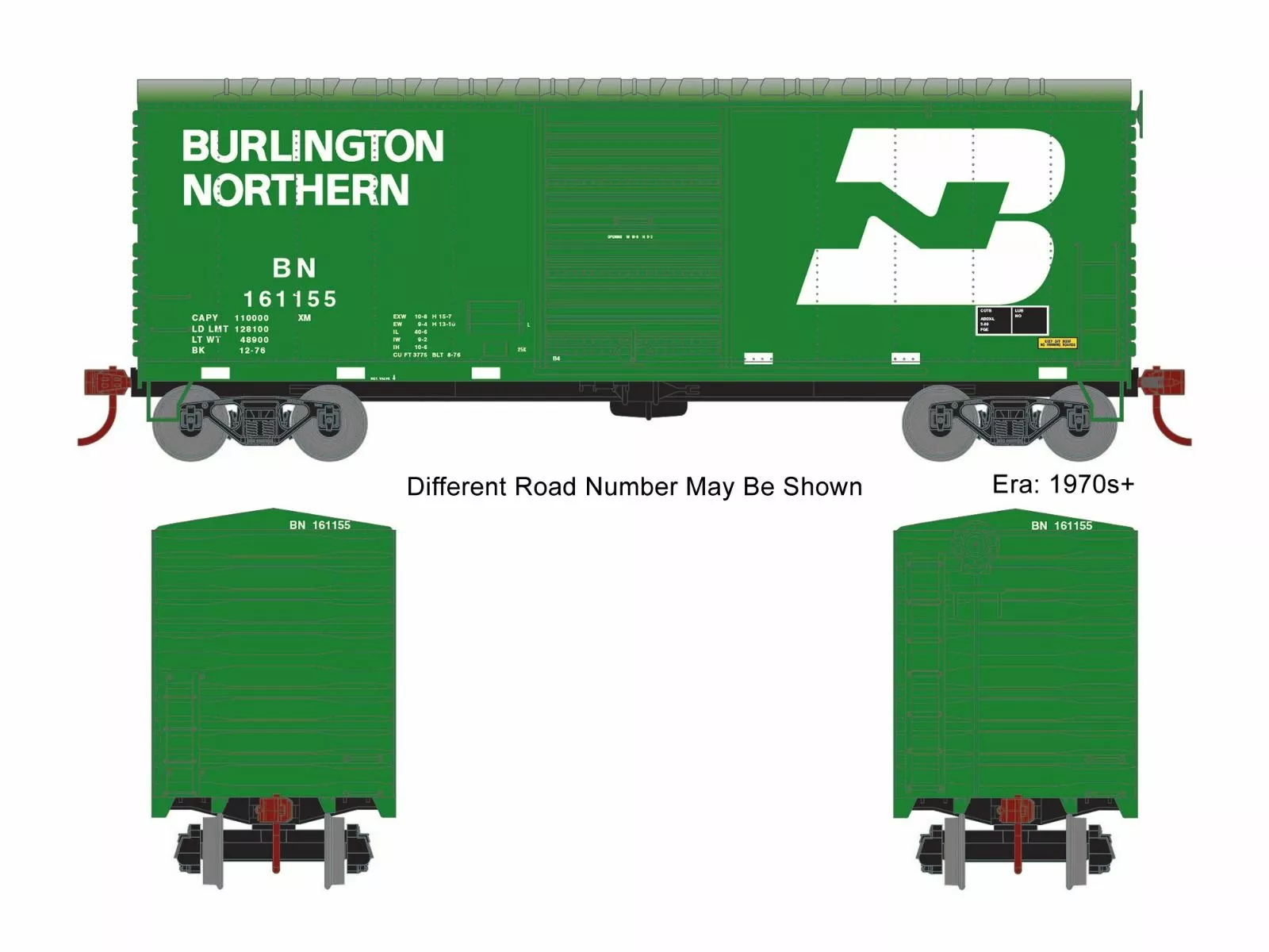 Athearn HO 40ft Modernized Box Car, Burlington Northern #161155