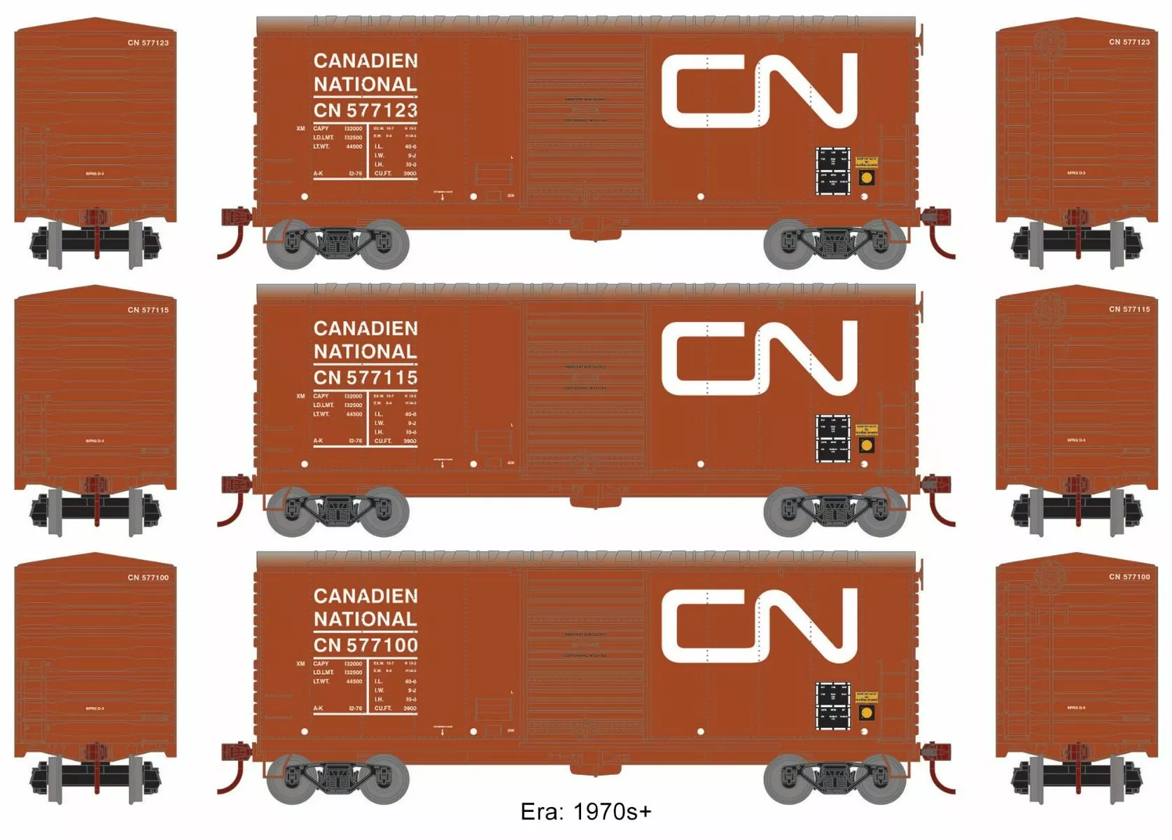 Athearn HO 40ft Modernized Box Car, Canadian National 3-Pack