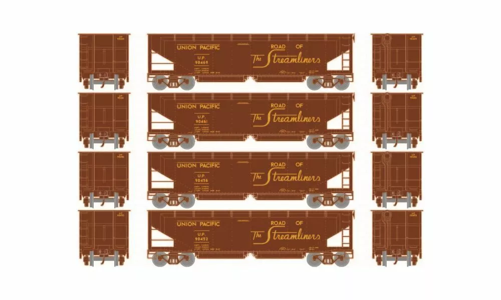 Athearn HO RTR 40ft Offset Ballast Hopper, Union Pacific 4-Pack #1