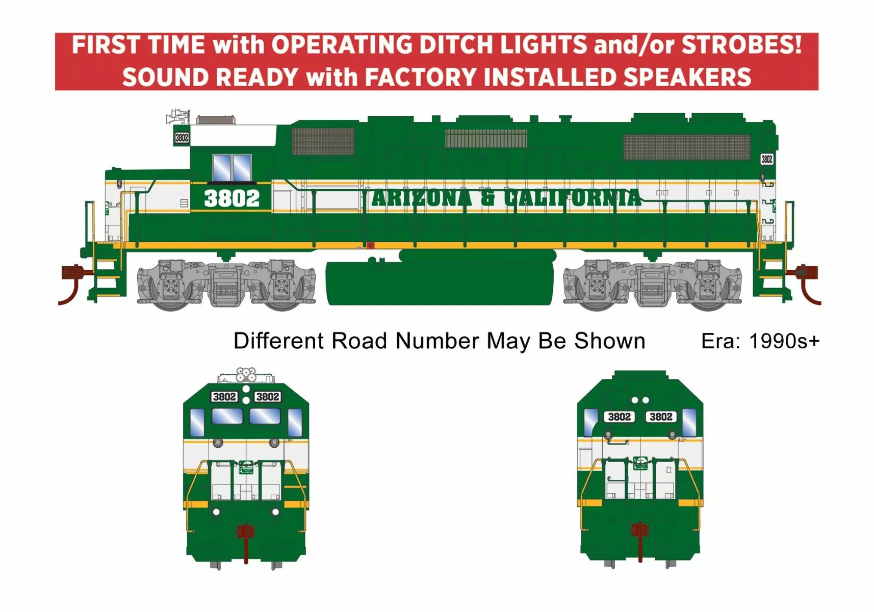 Athearn HO EMD GP38-2, DCC Sound Ready, Arizona & California #3802