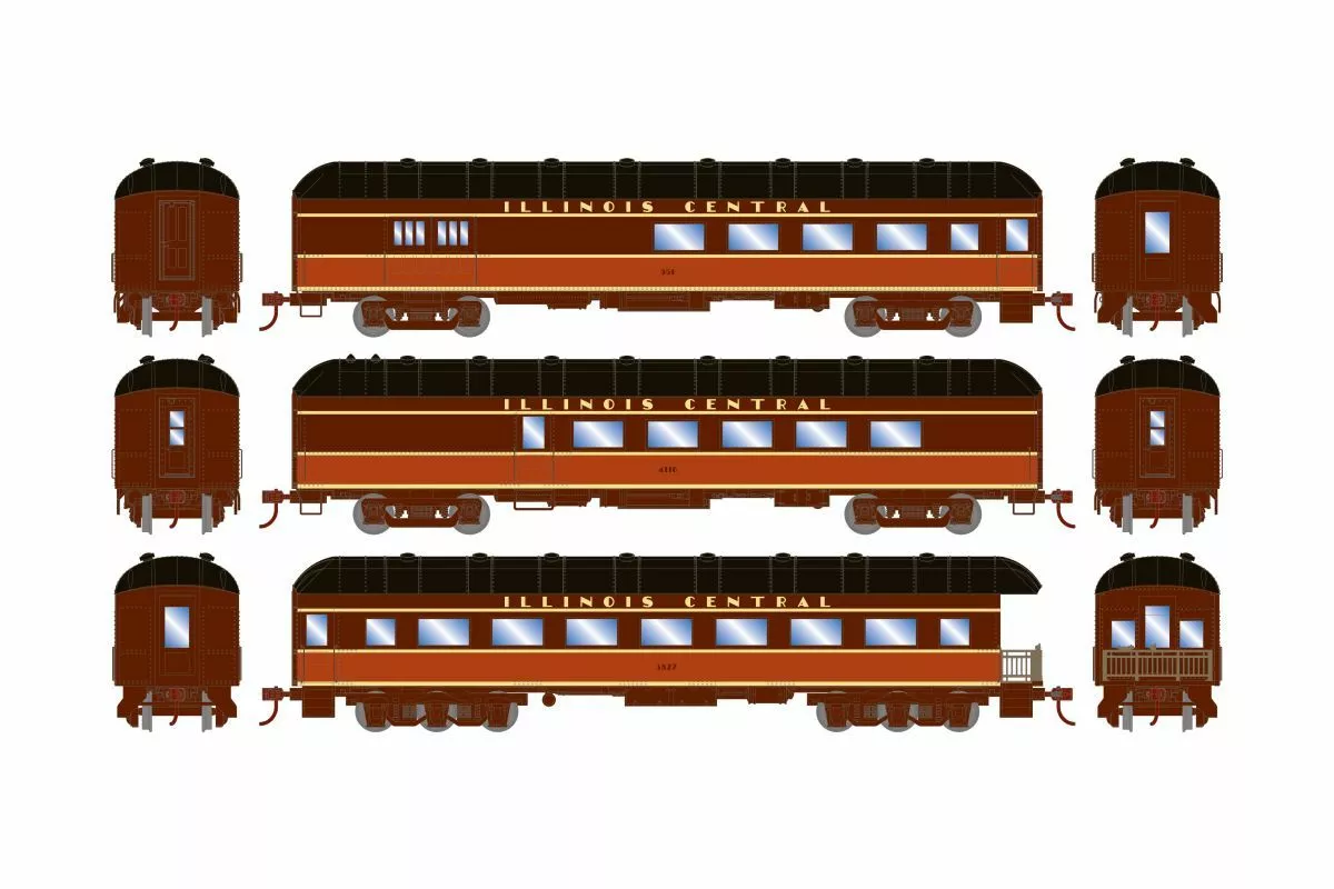 Athearn HO RTR Harriman 60ft Arch Roof Set, Illinois Central 3-Pack