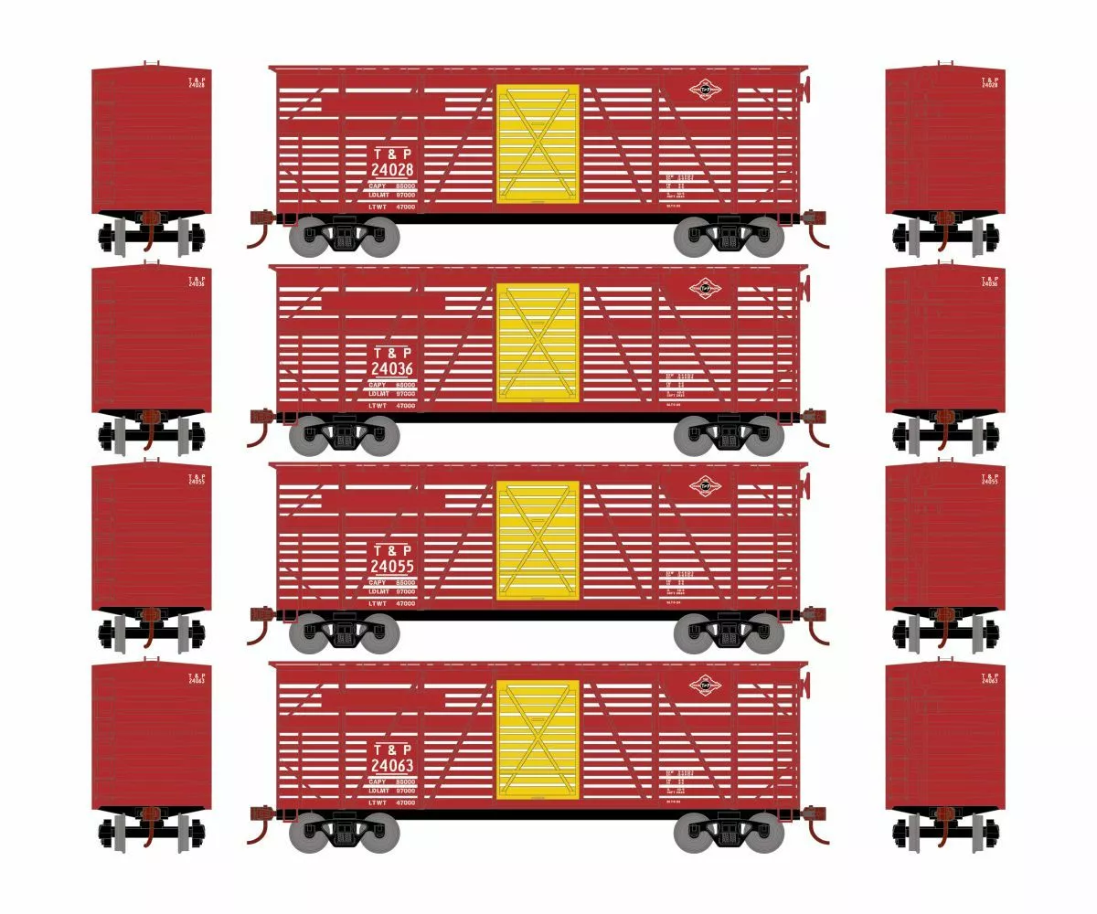 Athearn HO 40ft Stock Car, Texas & Pacific 4-Pack
