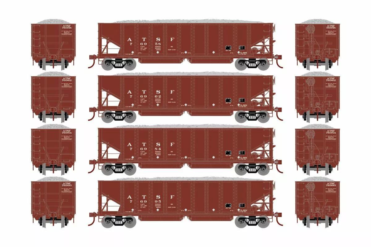 Athearn HO RTR 40ft Ballast Hopper, Santa Fe #2 4-Pack