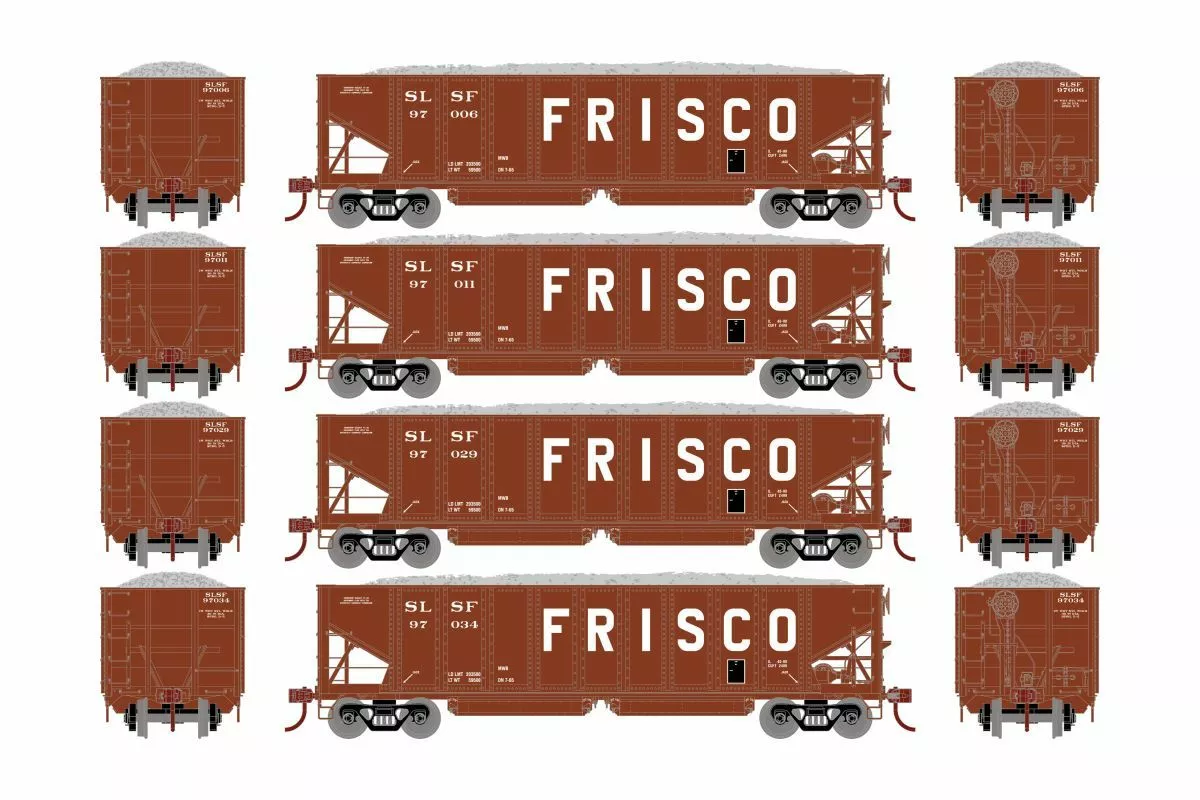 Athearn HO RTR 40ft Ballast Hopper, Frisco #1 4-Pack