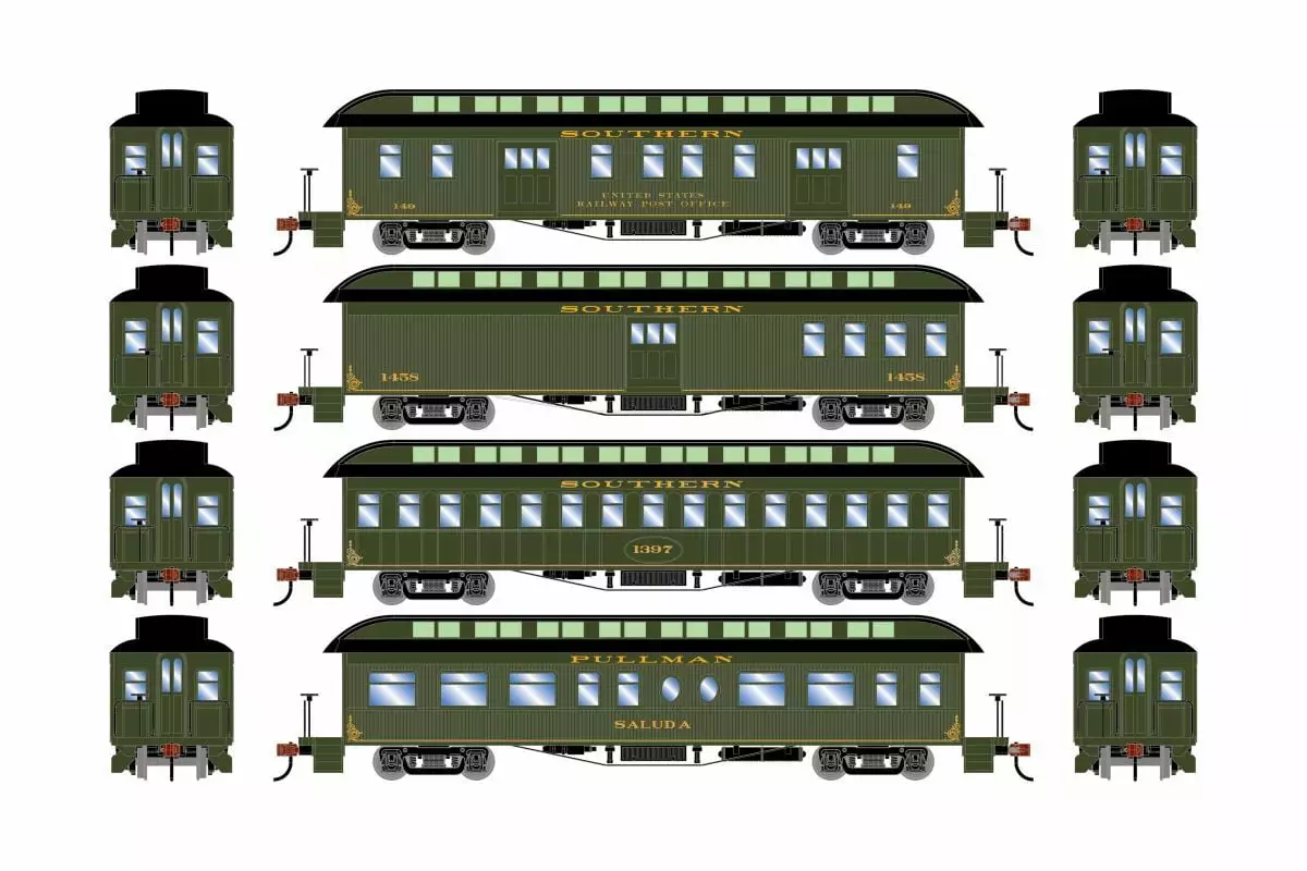Athearn ATH84859 HO 50ft Old Time Overland Passenger Set, Southern