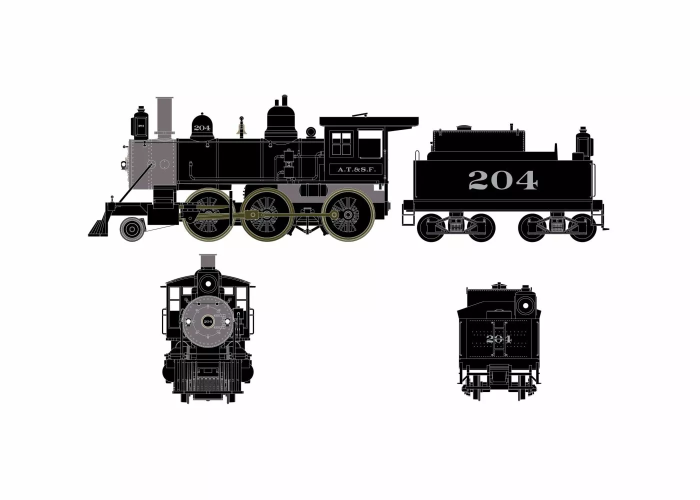 - Prototype specific smokestack, dome, headlight, lead truck and tender