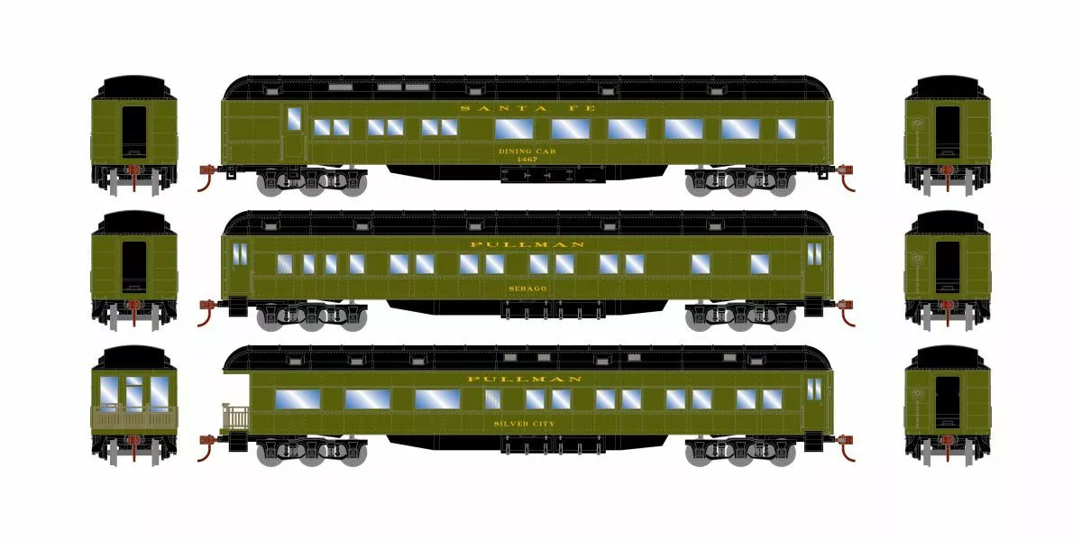 Athearn HO Heavyweight 3-Pack Diner/Coach/Observation, Santa Fe