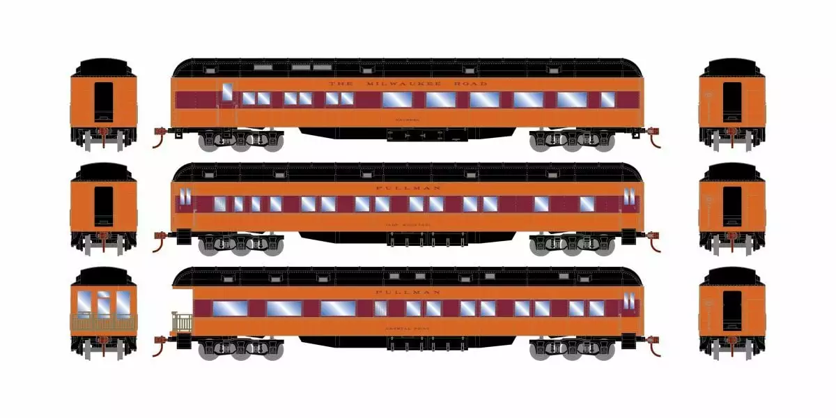 Athearn ATH88233 HO Heavyweight 3-Pack Diner/Coach/Observation, Milwaukee Road