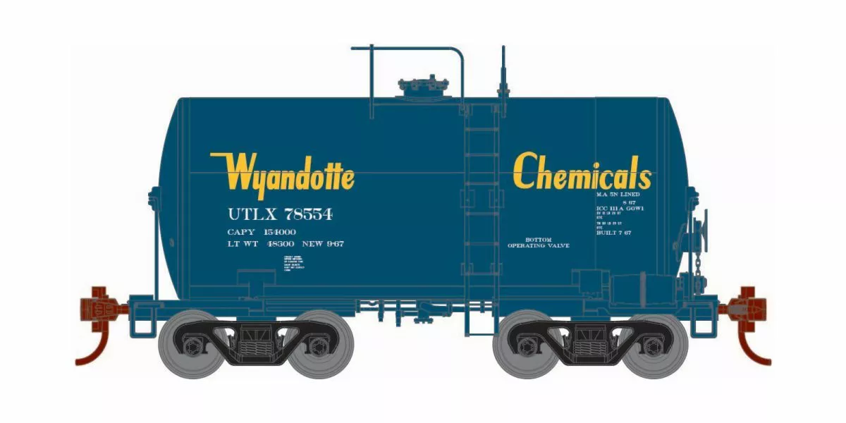 Athearn HO 30ft NACC 8K Gallon Tank Car, Wyandotte Chemical UTLX #78554