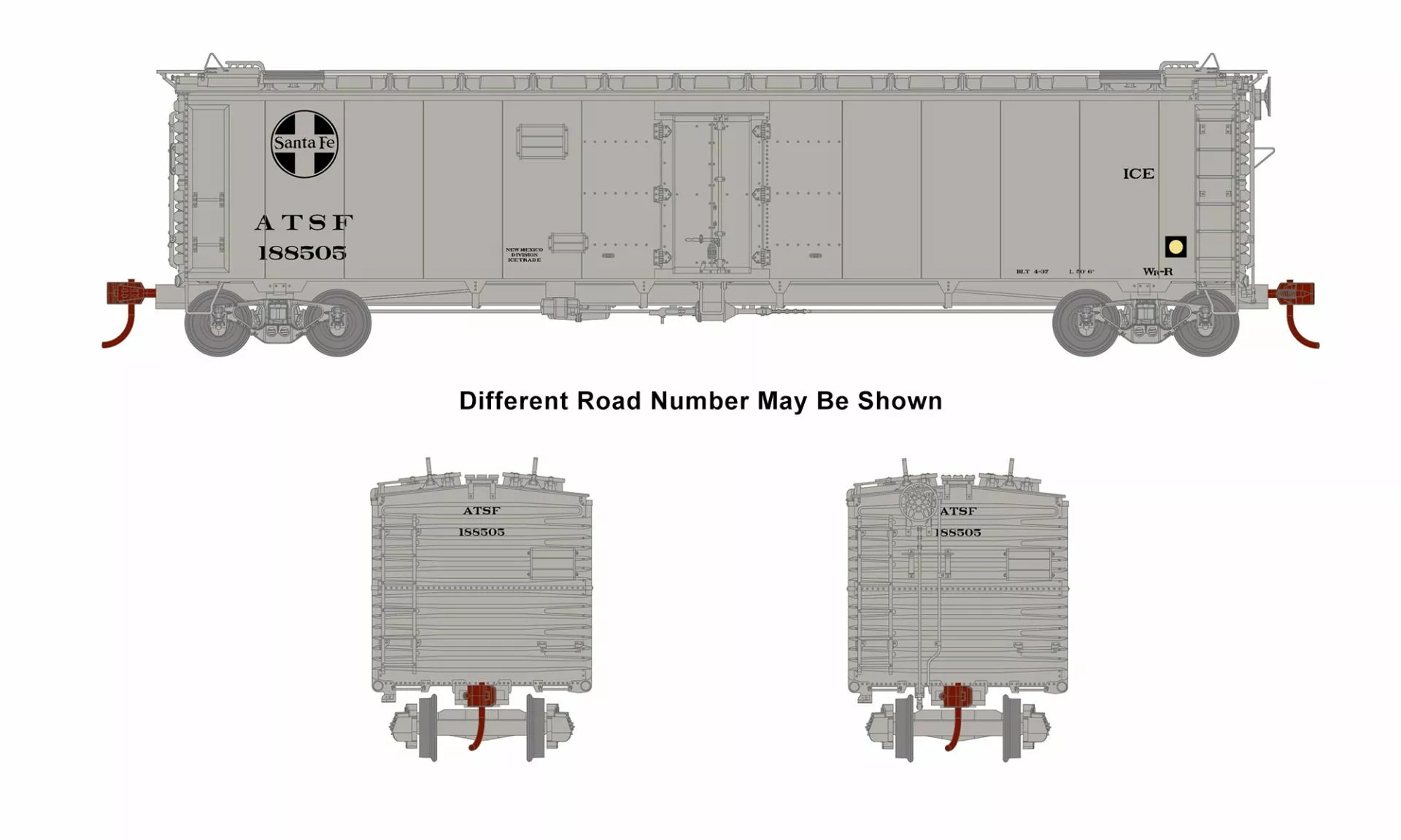Athearn Genesis Athearn ATH50026, HO Scale 50ft Ice Bunker Reefer, Santa Fe MOW #188505