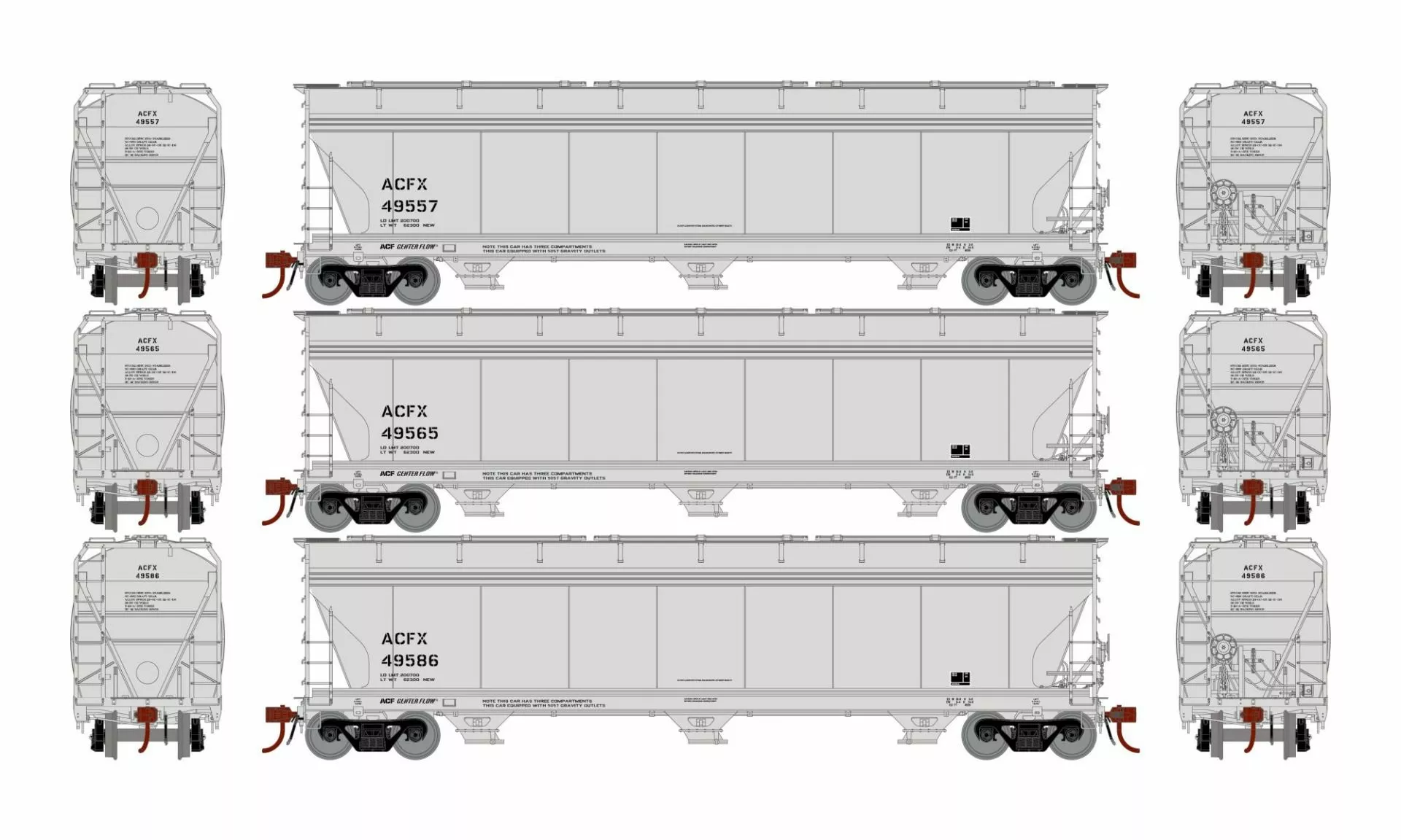 Athearn Genesis HO ACF 4600 3-Bay Covered Hopper, ACFX 3-Pack