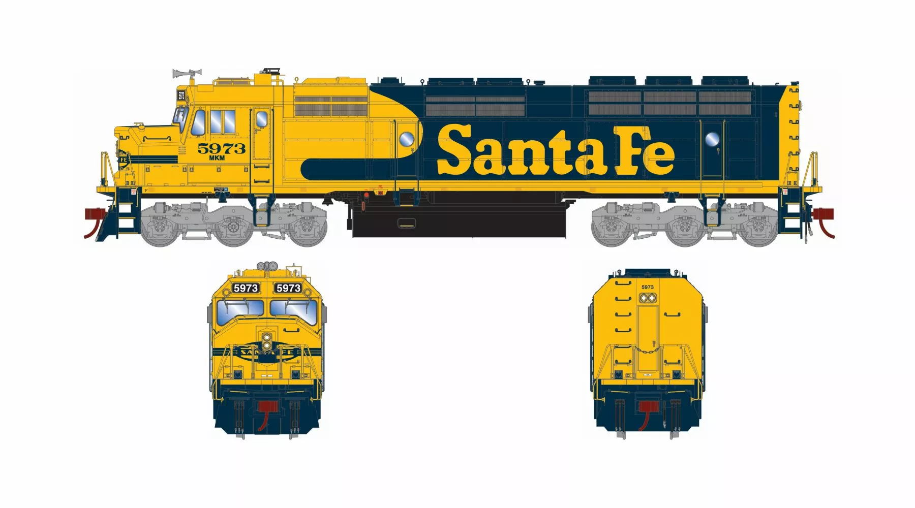 In By the early 1960’s the Electro-Motive Division (EMD) was at a big disadvantage. Their 567 engine, in use for over 20 years, had reached it’s peak at 2,500 horsepower in a turbocharged 16-cylinder version. EMD released a new 645 engine in 1966. The most powerful locomotive using this series of engine was the SD45, powered by a 20-cylinder turbocharged 645E engine producing 3600 horsepower. EMD then offered the V20 645E engine in the SDP45 in a standard hood configuration and longer frame to occomodate the steam generator needed for passenger service. The EMD SDP45 was a good passenger locomotive, but to the Santa Fe Railway it did not look the part. EMD therefore designed a lightweight “cowl” body to cover the locomotive, though it did not, as in earlier cab units, provide any structural strength, which remained in the frame. The cowl provided sleeker looks, better aerodynamics at speed, and allowed the crew to enter the engine compartment en route for diagnostics and maintenance. After sponsoring the development of the FP45 passenger locomotive, the Santa Fe requested a similar freight locomotive from Electro-Motive. Where the FP45 was an SDP45 wrapped in a full-width Cowl carbody, the new F45 was essentially an SD45 given the same treatment.