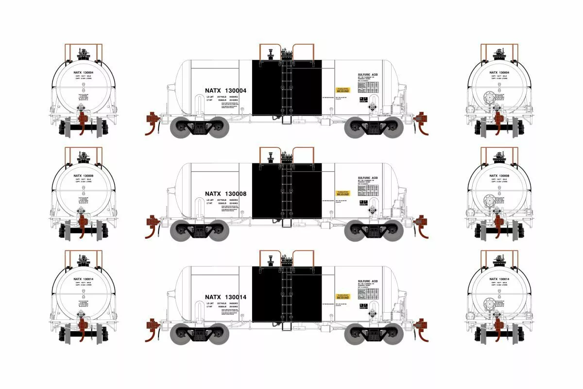 Athearn Genesis HO 13,600 Gallon Acid Tank, NATX 3-Pack