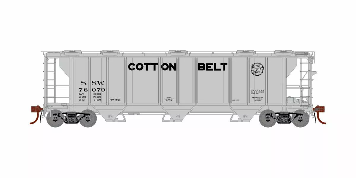 Athearn Genesis HO PS-2 2893 3-Bay Covered Hopper, Cotton Belt #76098