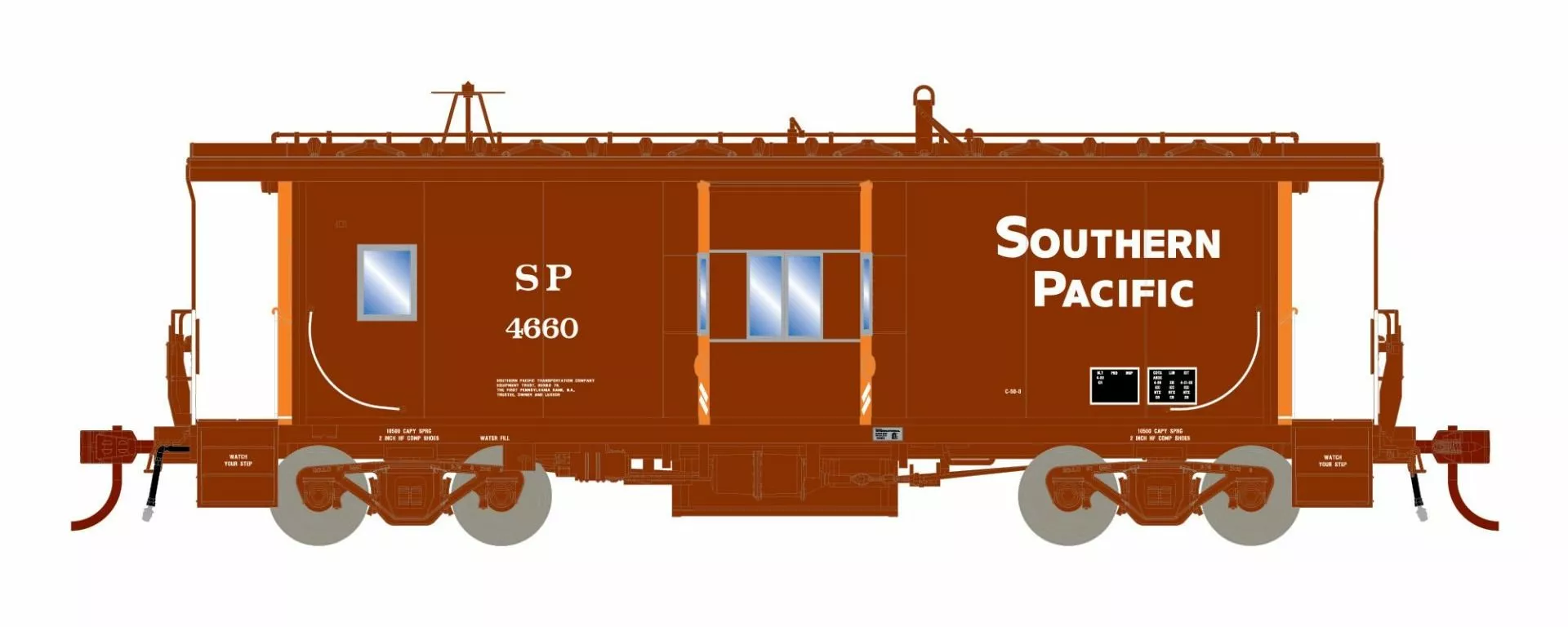 Perhaps one of the most recognizable icons of American railroading, the caboose completed the train. Cabooses provided shelter for the rear end crew. From the cupola or bay windows, the crew could keep a lookout for shifting loads, damaged equipment, and overheating axles, this was long required for switching and shunting. As rail cars became larger in the late 1950s and early 1960s, there was a real need for cabooses to have greater visibility for the crew. In the extended-vision or wide-vision caboose, the sides of the cupola project beyond the side of the car body. This model was introduced by the International Car Company and saw service on most U.S. railroads. The expanded cupola allowed the crew to see past the top of the taller cars that began to appear after World War II, and also increased the roominess of the cupola area.